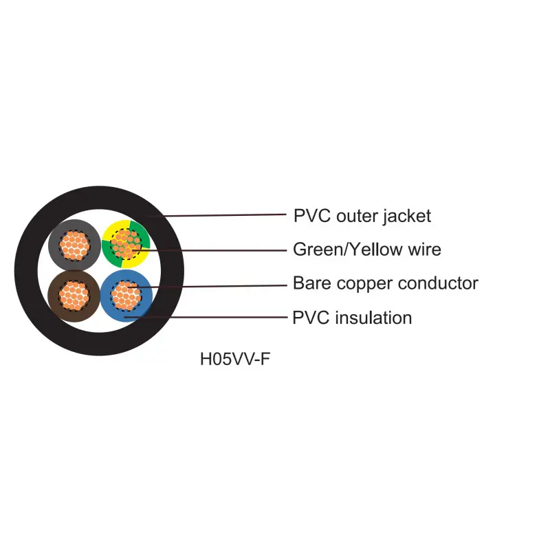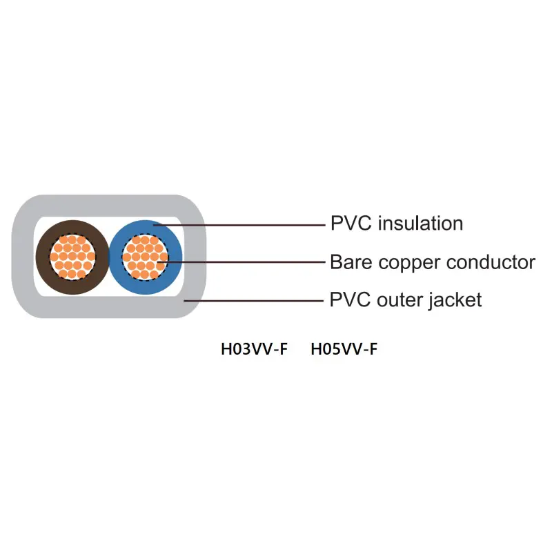 H05VV-F, H05VH2-F, H03VV-F, H03VVH2-F componitur e Classis V fine aeris conductores, PVC velit et vagina plumbea liberorum.