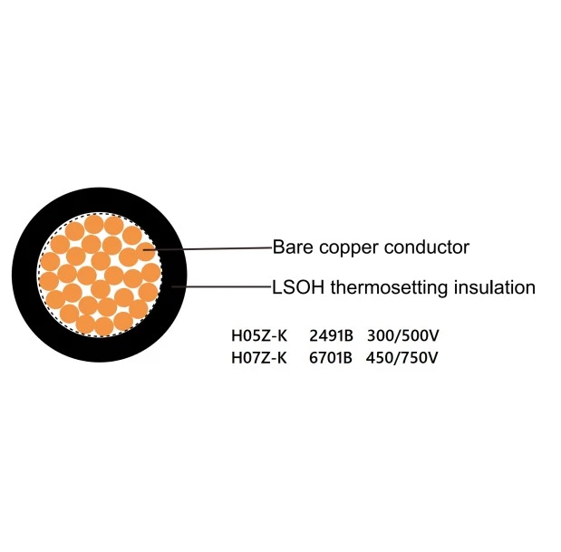 Rated intentione: H07Z-U, H07Z-R (6491B), H07Z-K (6701B), 450/750V.